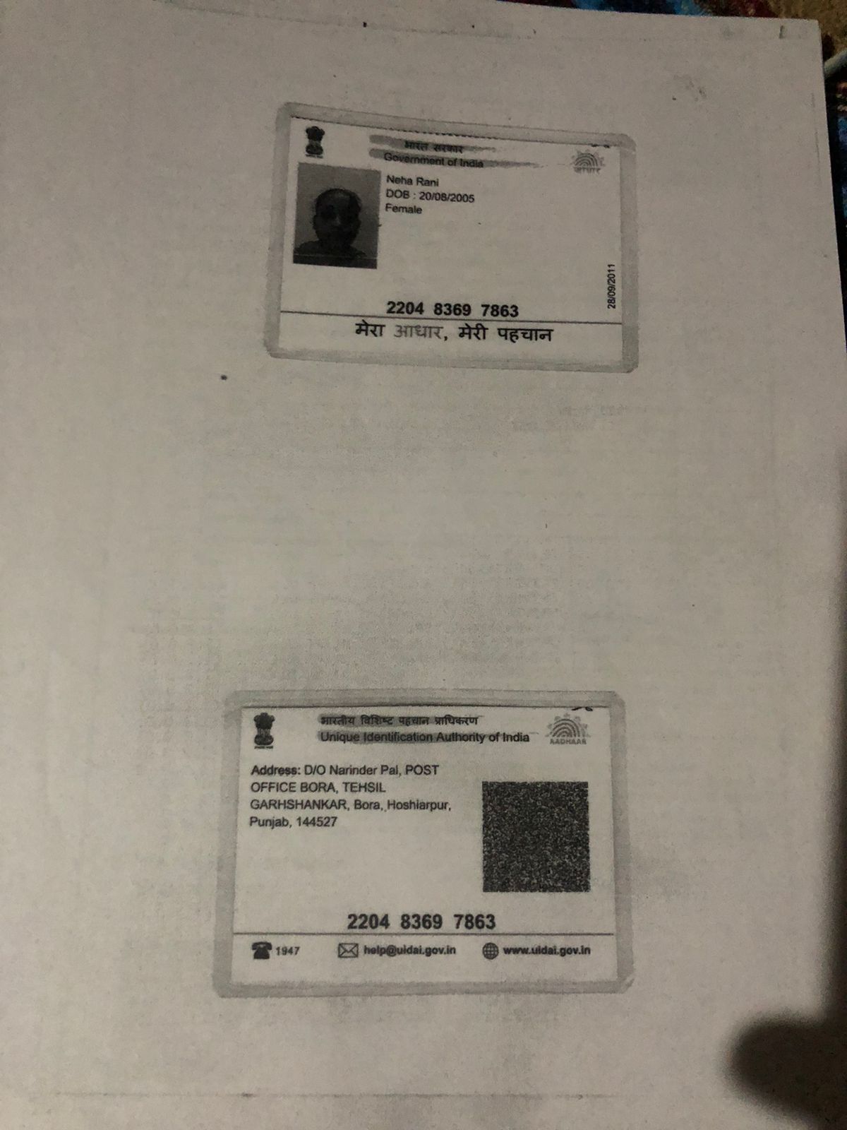 • Aadhar Card