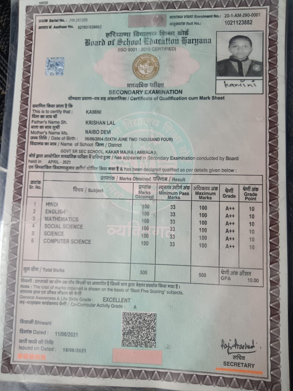 • Aadhar Card
