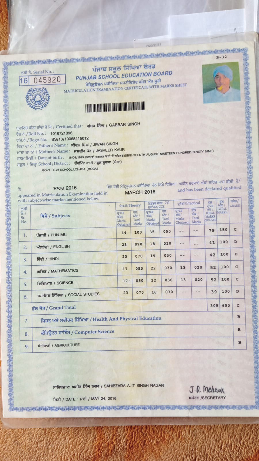 Marriage StatusUnmarried ReligionSikhism Belongs ToMoga, Moga